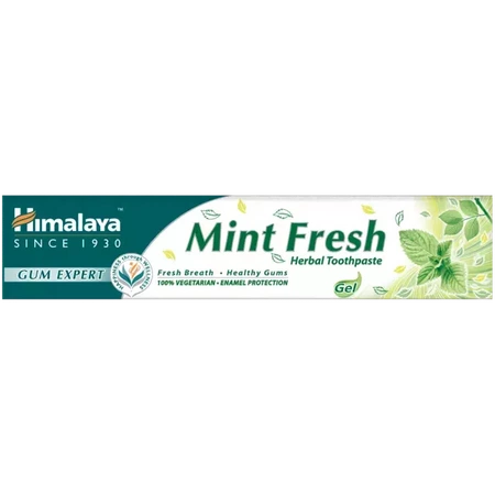 Ziołowa pasta do zębów Himalaya Mint Fresh skutecznie likwiduje problem nieświeżego oddechu na wiele godzin. Oparta jest na naturalnych, starannie wyselekcjonowanych składnikach, które zapewnią Ci mocne zęby, zdrowe dziąsła i świeży oddech każdego dnia.