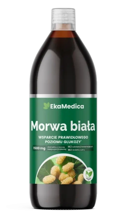 EkaMedica Morwa biała to suplement diety w formie płynnej, wyprodukowany z ekstraktu z liści morwy białej (Morus alba).